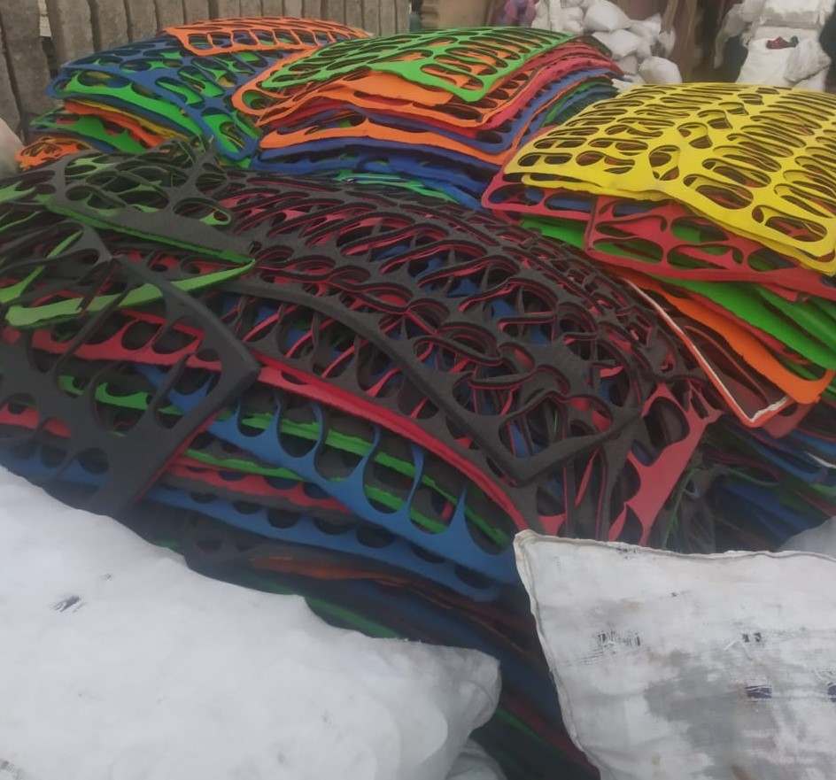 EVA Scrap shall consist of scrap Ethylene Vinyl Acetate (EVA) Scrap in Bales. EVA post industrial skeletal waste bales. the material is from the production of heels and soles in the shoe industry. The EVA Scraps can be Customized in Color and Thickness. There are several kinds of color, White, Black, Green, Red, Purple, Yellow.